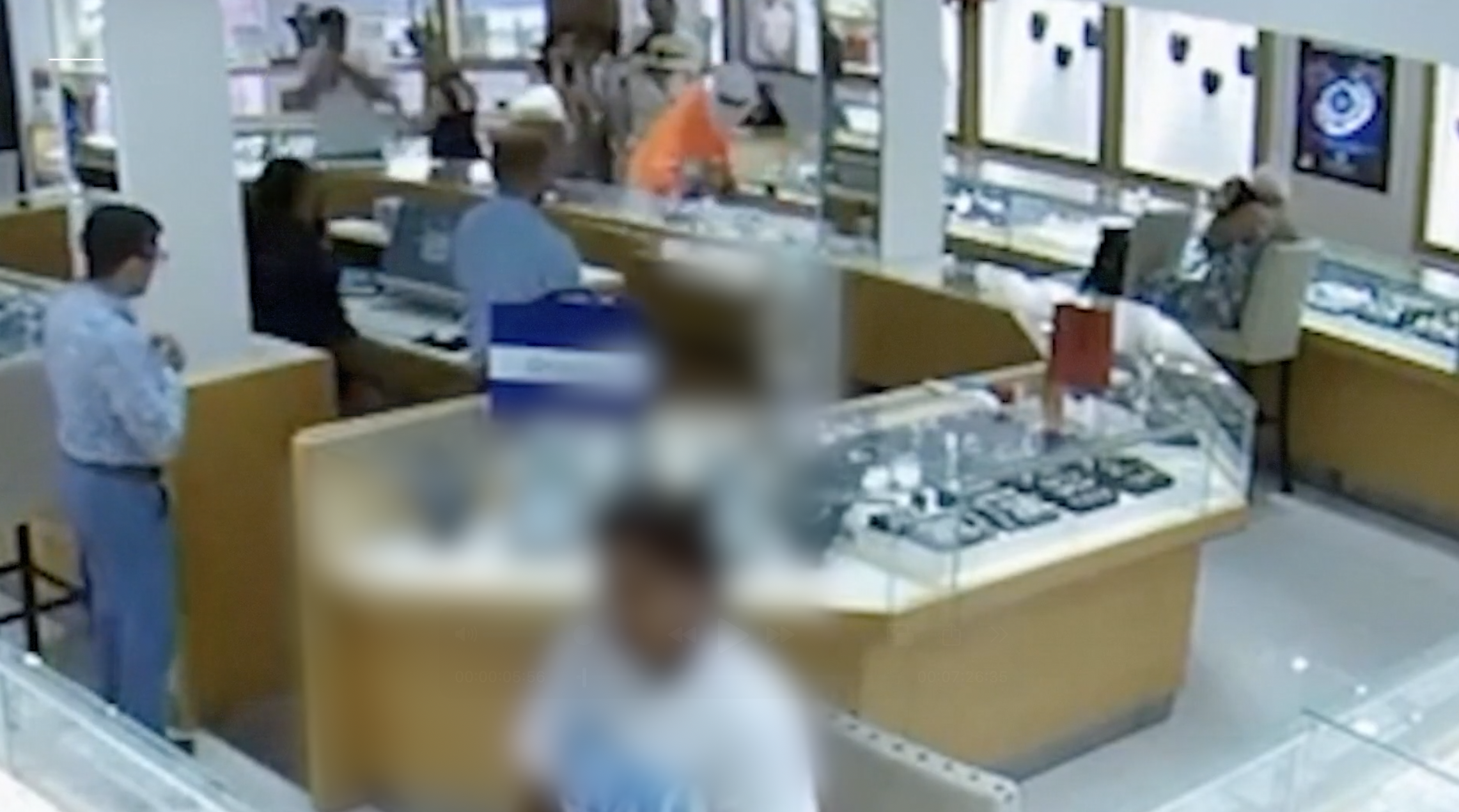 During the robbery, CCTV footage captured the image of a man with a white cloth mask covering his head and face smashing open glass cabinets as Christmas shoppers looked on.